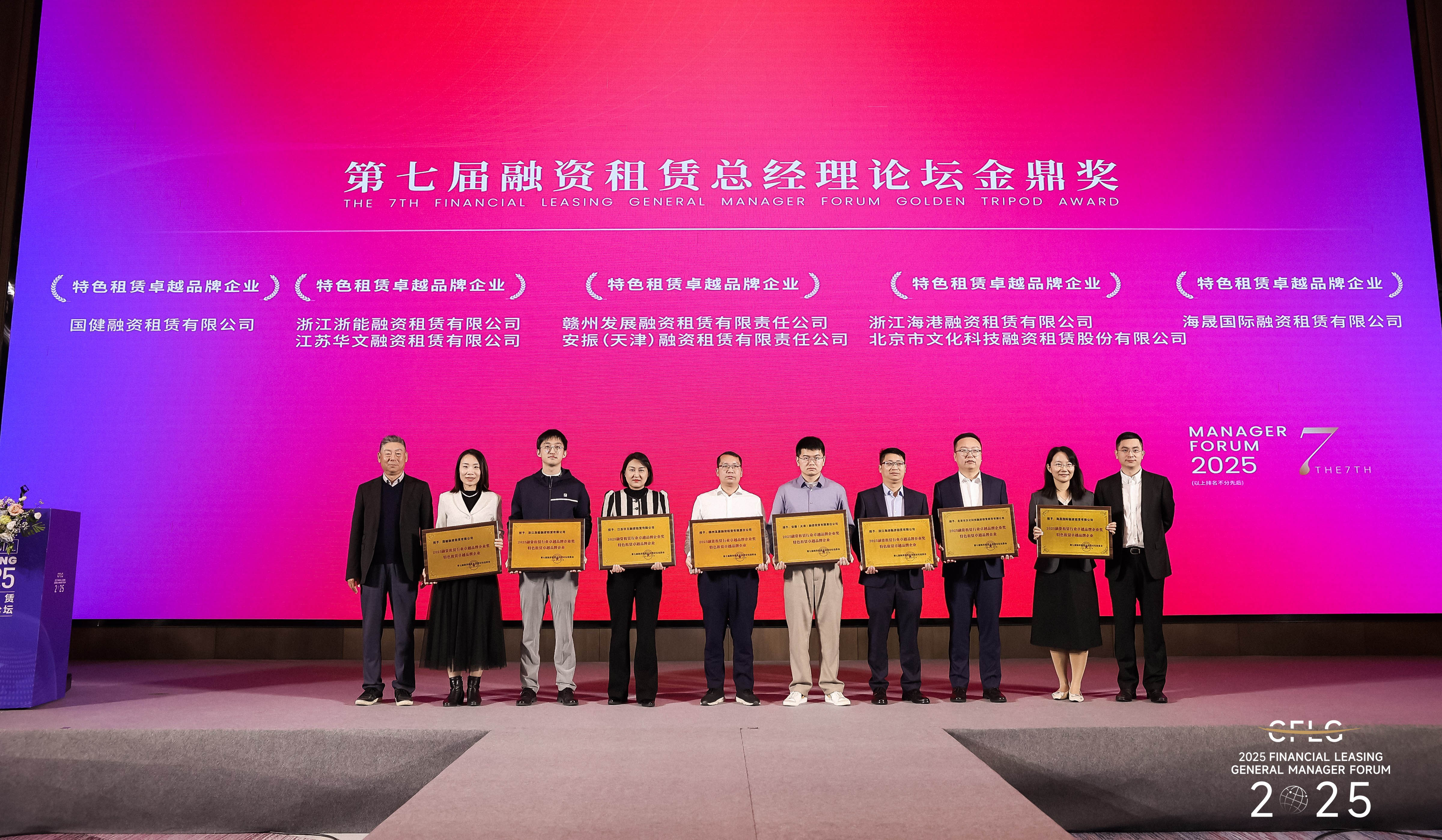11月28日,第七届融资租赁总经理论坛在广东珠海举行。本届论坛以“十五五新周期·新格局:融资租赁的战略重塑与价值再造”为核心主题,汇聚了行业领袖、监管代表、产业专家与学术精英, 探索创新路径,共谋行业发展。国健融资租赁有限公司受邀出席论坛及“金鼎奖”颁奖典礼,并荣获“2025融资租赁行业卓越品牌企业奖——特色租赁卓越品牌企业”。