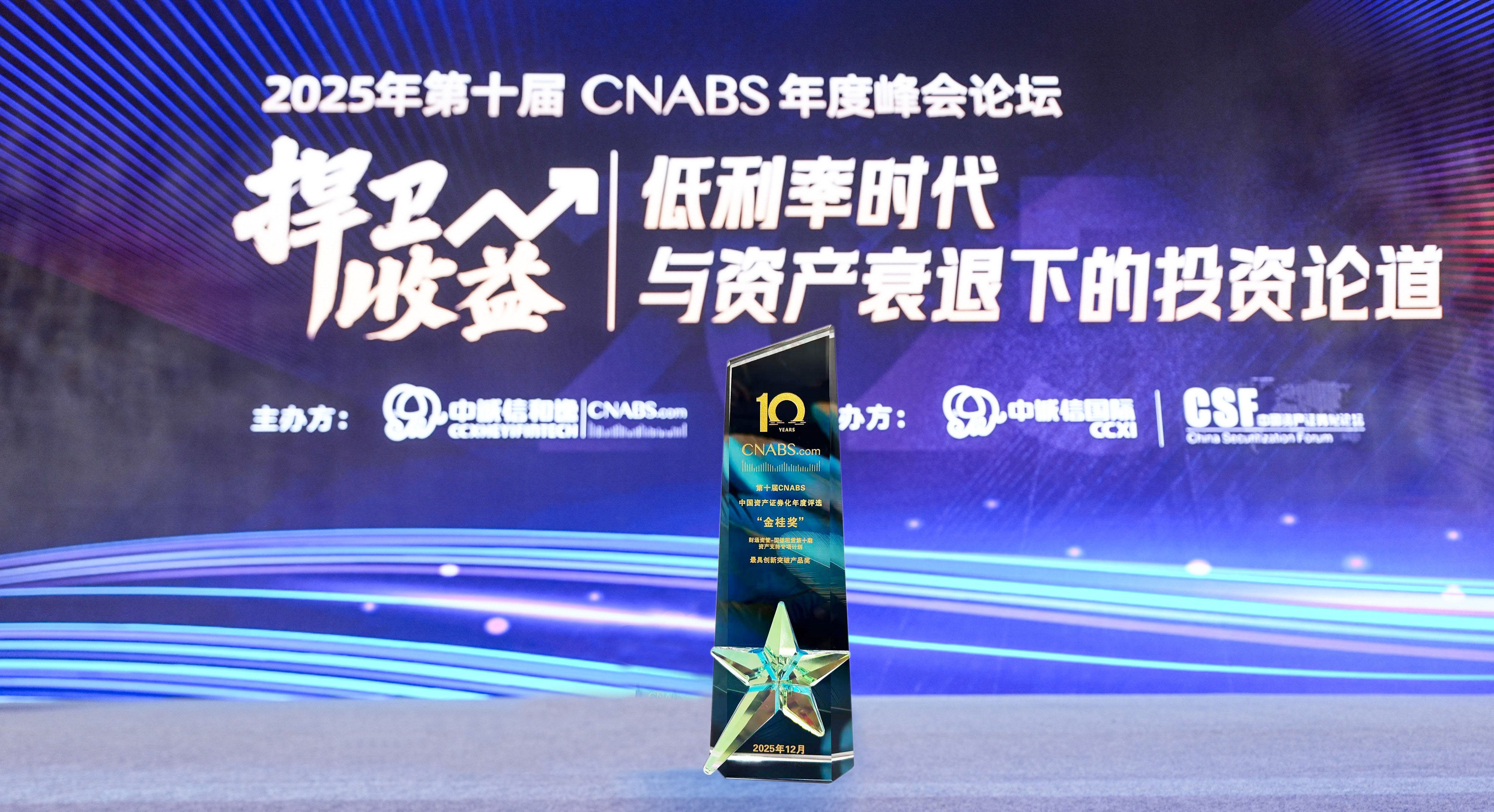12月11日,由中诚信和逸CNABS主办的“第十届CNABS年度峰会”在上海举办,第十届CNABS“金桂奖”年度评选结果也于同日揭晓。国健融资租赁有限公司(以下简称“公司”)凭借财通资管-国健租赁第十期资产支持专项计划,经专家评审组综合评选,荣获最具创新突破产品奖。